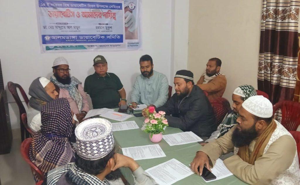 আলমডাঙ্গা ডায়াবেটিক সমিতির সম্মেলন কক্ষে আয়োজিত সেমিনারে সেমিনার আলমডাঙ্গা নাগরিক উন্নয়ন কমিটির সাংগঠনিক সম্পাদক শরিফুল ইসলাম পিন্টু র উপস্থাপনায় সভাপতিত্ব করেন আলমডাঙ্গা ডায়াবেটিক সমিতির সভাপতি রহমান মুকুল।হাফেজ মওলানা শামছুল হক এর কোরআান তেলওয়াত এর মাধ্যমে সেমিনার এর শুরু হয়।এর পর প্রধান আলোচক হিসাবে বক্তব্য রাখেন আলমডাঙ্গা ডায়াবেটিক সমিতির সাধারণ সম্পাদক বিশিষ্ট চিকিৎসক ডা মো আব্দুল্লাহ আল মামুন।