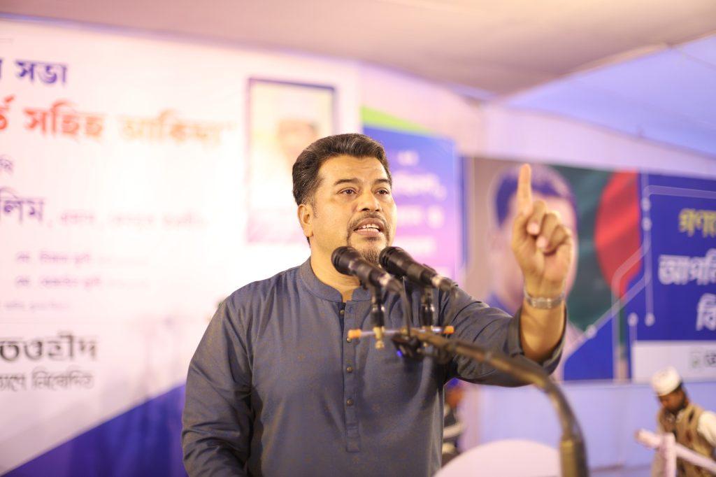 ঈমান ও আমলের ভিত্তি হিসেবে আকিদার গুরুত্ব ব্যাখ্যা করে তিনি বলেন, “উদ্দেশ্য ভুলে গেলে যেমন সঠিক গন্তব্যে যাওয়া যায় না, তেমনি আকিদা সহিহ না হলে আমল করেও লাভ হবে না। আজ আমরা আল্লাহর বিধানকে শুধু মসজিদে সীমাবদ্ধ করেছি, আর রাষ্ট্র পরিচালনায় মেনে নিয়েছি মানুষের তৈরি বিধান। এই দ্বিমুখী নীতির কারণেই আজ আমাদের এই অবস্থা।”