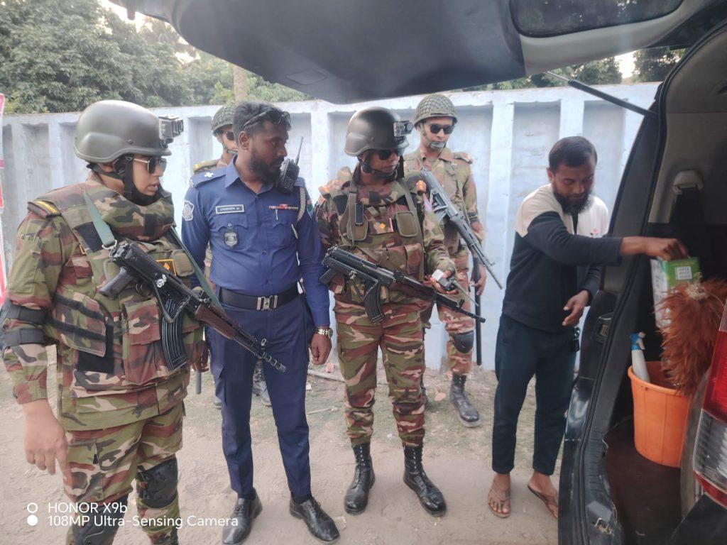 চুয়াডাঙ্গার কোর্ট মোড়ে সেনা ও পুলিশের যৌথ চেকপোস্ট অভিযান, জরিমানা ২২ হাজার টাকা