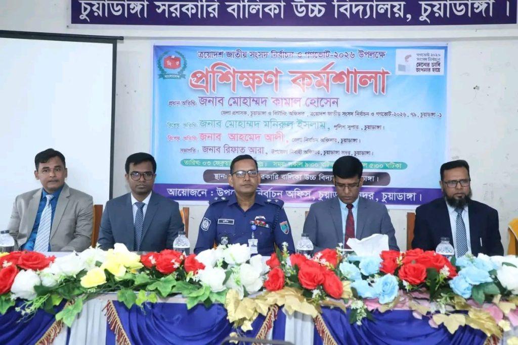 কর্তৃক আয়োজিত চুয়াডাঙ্গা সরকারি বালিকা উচ্চ বিদ্যালয়ে আজ ৩ ফেব্রুয়ারি তারিখ সকাল ১১ টার সময় ভোটগ্রহণ কর্মকর্তাদের দিনব্যাপী প্রশিক্ষণ কর্মশালা অনুষ্ঠিত হয়। উক্ত প্রশিক্ষণ কর্মশালায় বিশেষ অতিথি হিসেবে উপস্থিত ছিলেন মোহাম্মদ মনিরুল ইসলাম, পুলিশ সুপার, চুয়াডাঙ্গা।