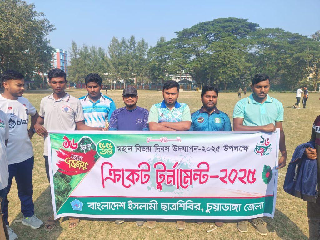 মহান বিজয় দিবস ১৬ই ডিসেম্বর উপলক্ষে বাংলাদেশ ইসলামী ছাত্রশিবির, চুয়াডাঙ্গা জেলা শাখার উদ্যোগে এক প্রীতি ক্রিকেট টুর্নামেন্টের আয়োজন করা হয়। টুর্নামেন্টটি অদ্য ১৭ই ডিসেম্বর বুধবার সকাল ১১ ঘটিকায় চুয়াডাঙ্গা সরকারি কলেজ মাঠে অনুষ্ঠিত হয়।