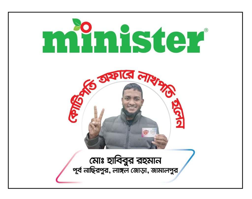 এই ক্যাম্পেইনটি সীমিত সময়ের জন্য প্রযোজ্য। বিস্তারিত জানতে ভিজিট করুন ministerbd.com বা কল করুন ০৯৬০৬ ৭০০ ৭০০ নম্বরে।
