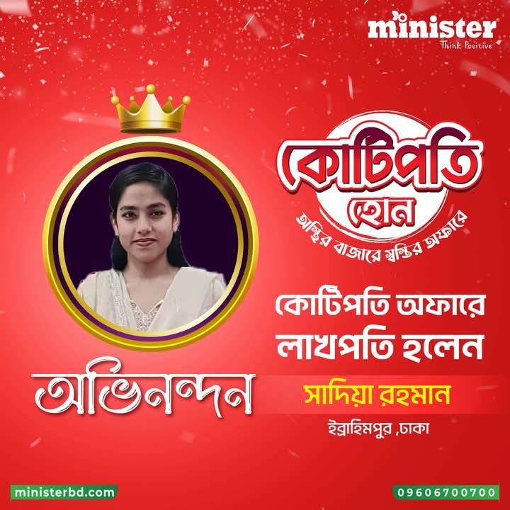 মিনিস্টার “কোটিপতি হোন” অফারে লাখপতি হলেন ঢাকার সাদিয়া
