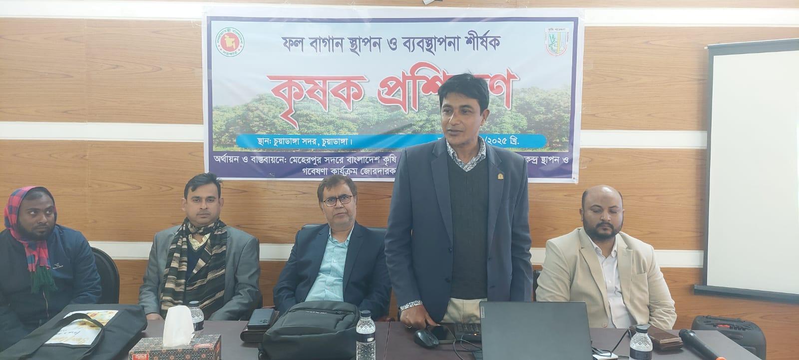 ফল বাগান স্থাপন ও আধুনিক ব্যবস্থাপনা কলাকৌশল সম্পর্কে কৃষকদের দক্ষ করে তুলতে চুয়াডাঙ্গা সদরে দিনব্যাপী কৃষক প্রশিক্ষণ অনুষ্ঠিত হয়েছে।