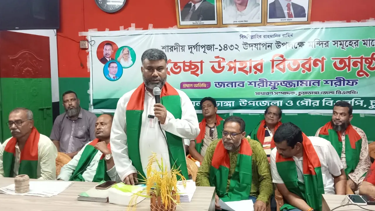 শারদীয় দুর্গাপূজা ১৪৩২ উপলক্ষে চুয়াডাঙ্গার আলমডাঙ্গা উপজেলার ৩৫টি মন্দিরে বিএনপির পক্ষ থেকে শুভেচ্ছা উপহার বিতরণ করা হয়েছে। শুক্রবার