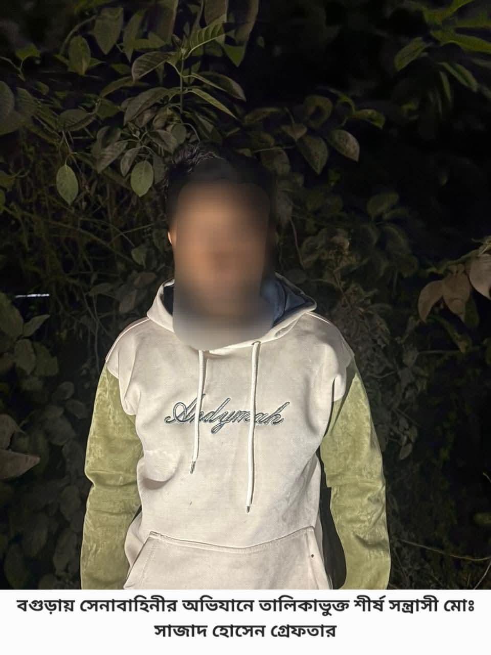 বগুড়ায় সেনাবাহিনীর অভিযানে তালিকাভুক্ত শীর্ষ সন্ত্রাসী গ্রেফতার: বিদেশী পিস্তল উদ্ধার