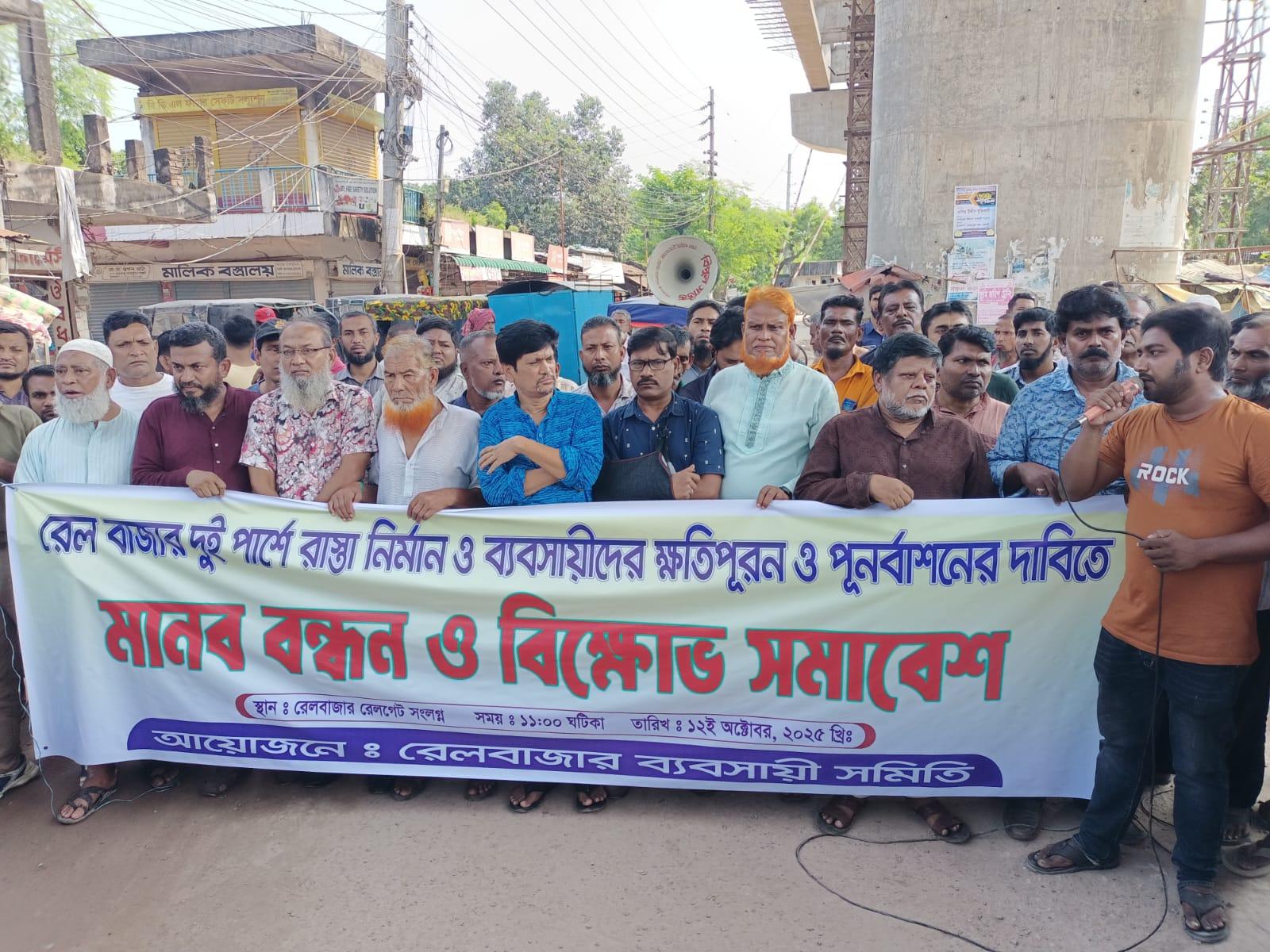 চুয়াডাঙ্গা: চুয়াডাঙ্গা শহরের রেলবাজার এলাকায় ওভারপাস নির্মানকাজে যাতায়াতে ভোগান্তির প্রতিবাদে মানববন্ধন ও বিক্ষোভ করেছেন স্থানীয় ব্যবসায়ীরা। এসময় ওই প্রকল্প